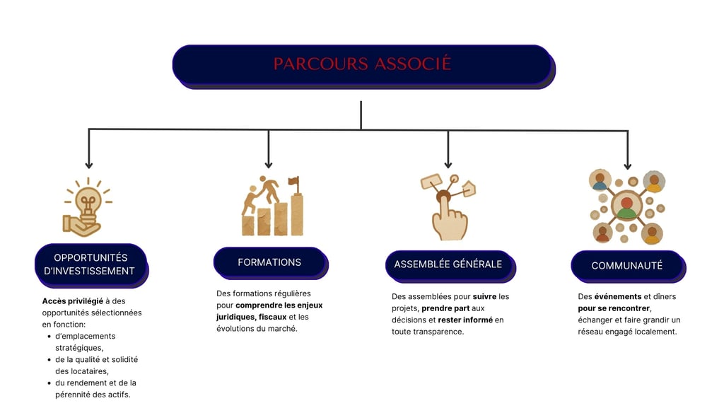 Nous fonctionnons principalement via une SCI (Société Civile Immobilière). Cette structure juridique est dédiée à la détention et à la gestion d'actifs immobiliers à plusieurs, où chaque investisseur est propriétaire de parts à hauteur de son apport.