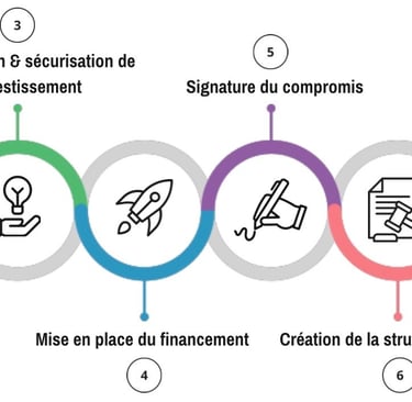 6. Création de la structure porteuse: mise en place de la société dédiée au projet, optimisée sur les plans juridique et fiscal.